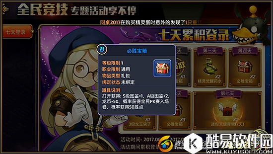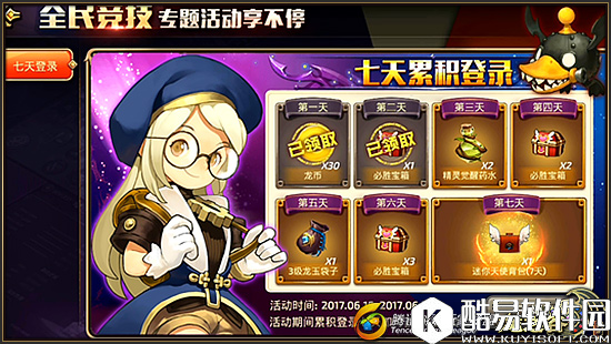 除了欢乐季活动以外,在6月15日到6月25日期间,我们还能在全民竞技的专题页面来领取丰厚的登录奖励。除了常规的龙币,精灵觉醒药水道具以外,还有全新的必胜宝箱以及时装道具-迷你天使背包等你获得。