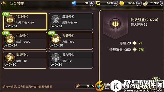在初期我们每个技能可以学习到5级,如果想要继续学习的话,则是需要会长来提升一定的公会等级,所以在我们狂战士加入公会时,也是需要注意这个技能的上限才好哦。如果我们把狂战士的力量和物理攻击以及生命都提升较高的话,则会增加很多属性和战斗力。