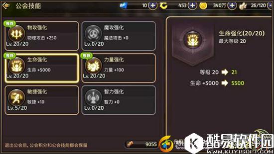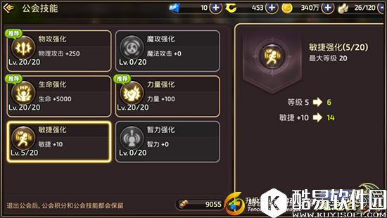 对于狂战士来说有很多的属性非常的重要,特别是力量和物理攻击以及生命,而在公会技能中我们也是可以直接利用公会贡献点提高这些属性。在公会的技能中有六个技能可以学习来提升自身的一定属性,分别是生命强化/力量强化/物攻强化/魔攻强化/敏捷强化以及智力强化,学习这些技能可以提升一定的对于输出,但是技能的学习也是有上限的。