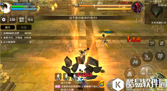 死亡骑士释放“能量斩”技能招式,对前方直线范围造成巨大的伤害,而且我们一旦被其命中还会产生击飞的攻击效果。以上图为例受到的伤害为1W5左右,而我们的血量连8W都没到,如果连续被本技能攻击到几次还是非常危险的。建议各位谷民通过Boss的起手动作进行预判,从而将本技能躲避。