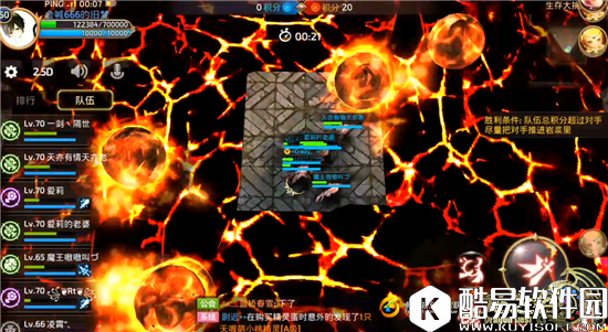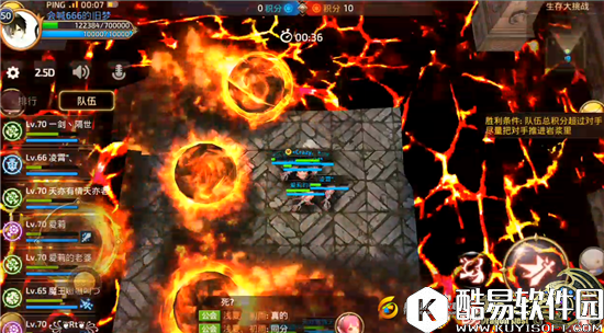 不过我们在对敌方队员进行攻击的时候,也要注意自身的安全。因为地图四周每隔一小段时间就会产生巨大的火球向我们所处的平台滚动。如果被其命中的话,受到的伤害还是非常吓人的。虽然我们有70W血量,但是依然有许多谷民在本玩法中丧命,这自然证实了本玩法的残酷性,可以比作为“检验技术的绝佳场所”。