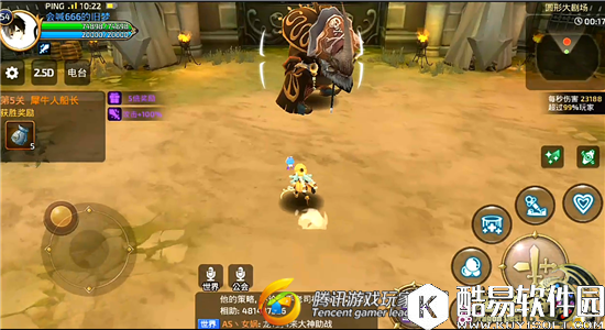 如果小伙伴们的血量岌岌可危的情况下,而治愈流技能却在冷却状态时,就要与犀牛人船长保持较远的距离,由于本玩法并没有时间限制,我们要做的事情就是拖延时间,直到治愈流技能的冷却时间结束。在我上图所处的位置,和Boss有着将近半场的距离,基本上不会被Boss的技能招式命中。