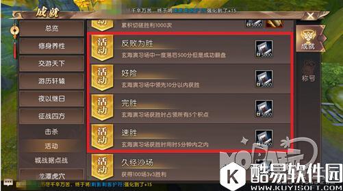 需要注意的是玄海有以下四个成就:反败为胜——【玄海演习场】中一度落后500分但是成功翻盘;好险——【玄海演习场】中领先10分以内获胜;完胜——【玄海演习场】获胜时占领5个积点;速胜——【玄海演习场】获胜时用时5分钟之内。