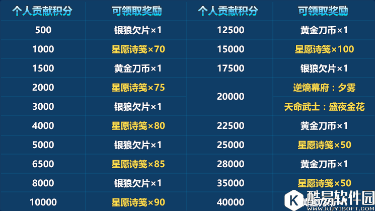 第一名:星愿诗笺×500 金币×50000 银狼欠片×3