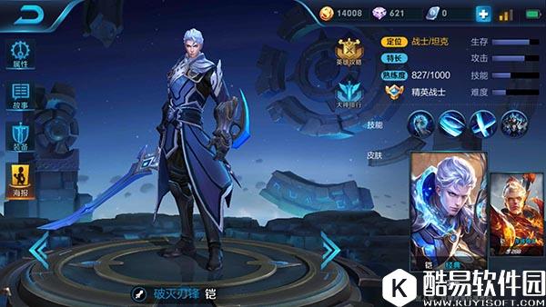 铠是一个全新推出的近战英雄,虽然在定位更偏向于战士,但是他也是一名坦克,并且是一名伤害极高的坦克。