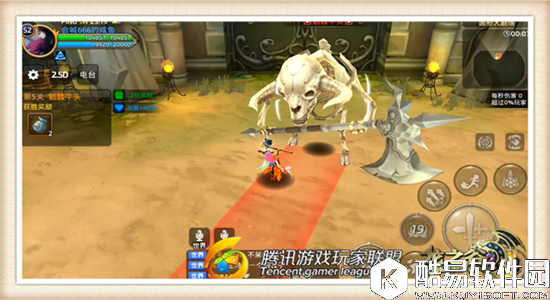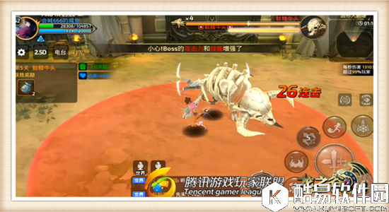在小伙伴们进入游戏后,面对的是骷髅牛头的第一个技能招式“重力拍击”。Boss挥动手中的巨斧向地面进行拍击,形成了一条直线攻击范围的冲击波,在本技能攻击范围内的话又要着手进行躲避,否则被命中的话受到的伤害还是非常恐怖的。