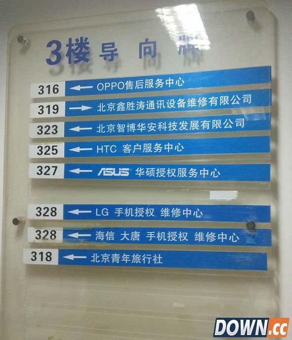来看看HTC的售后如何应对我们的刁难。这家名叫莫比通信的公司位于公主坟华鹰大厦三楼,作为HTC的授权手机维修机构,门口很明显的HTC标识,看样子是统一UI的设计。