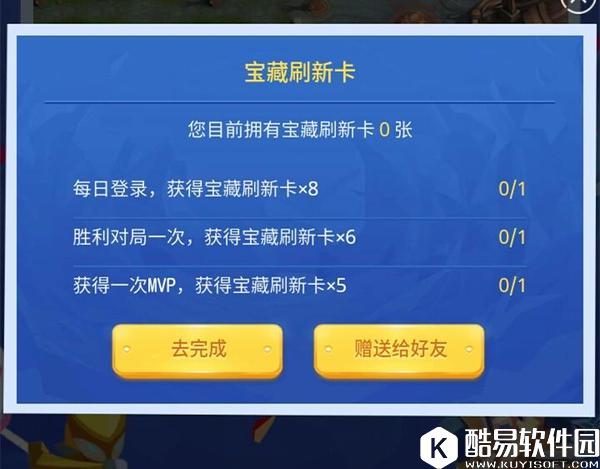 一个是刷新宝藏(上图是刷新卡的主要获得方法,有时候挖了之后也有),把宝藏刷新到等级越高,那么得到的祝福值就越多,普通2,勇者3,史诗4,传说5。光是这样一天挖5个就可以得到25了,那么就不用愁了。