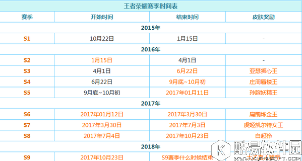 王者荣耀赛季时间表