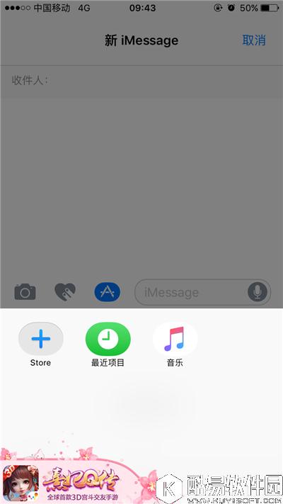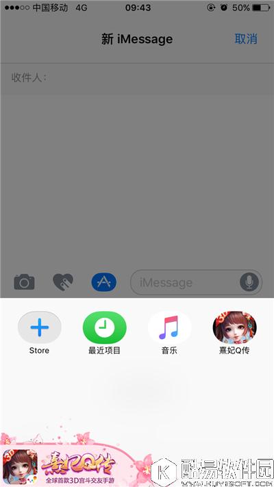 由于此款贴纸只在iMessageAppStore上提供,所以小主们要确保自己的设备已经升级到iOS10版本及以上(升级方法:设置-通用-软件更新)。打开“信息”界面,任意选择一位联系人开始编写短信,呼出回复栏,点击输入框左侧的“>”向右拉出菜单,弹出Sticker功能界面。