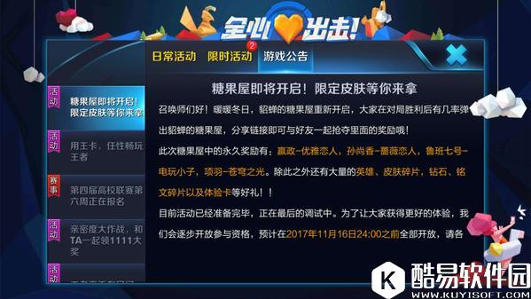 1)活动时间:11月16日——11月19日(11月16日具体开放时间请见当日游戏内活动公告)