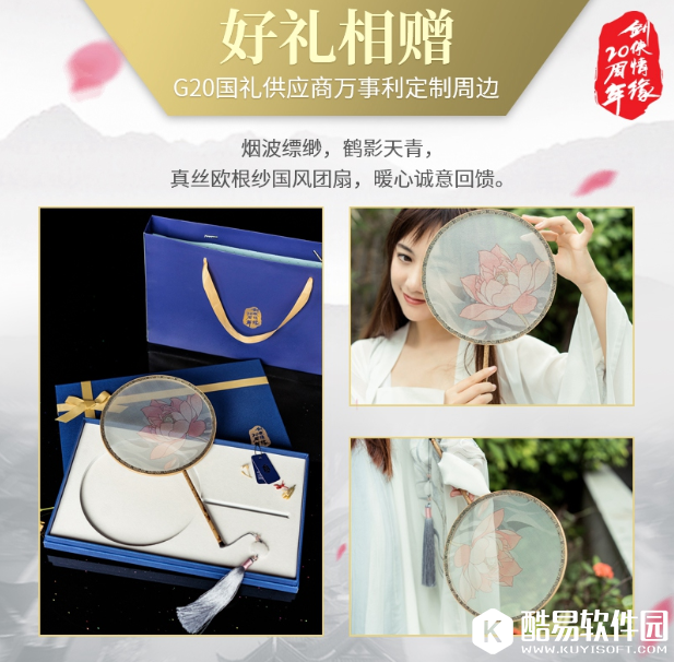 当然去现场的小伙伴们还会有福利相赠,只要来到庆典的现场就会获得一把精美的团扇一把,非常的精致,扇面印有荷花,非常的美。还可以兑换剑网3周年系列挂件任意一件。更多福利只等着你们来到庆典现场。
