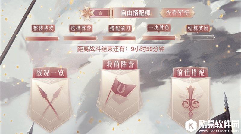 活动总共分为五个阶段,第一个阶段是整装待发,可以查看介绍以及军情,第二个阶段选择阵营,可以自己选择报名那个阵营,第三个阶段是搭配演习,可以先演练搭配,第四个阶段是一决胜负,顾名思义,直接进行比拼,第五个阶段是奖励结算,胜利的队伍可以获得以上的奖励。