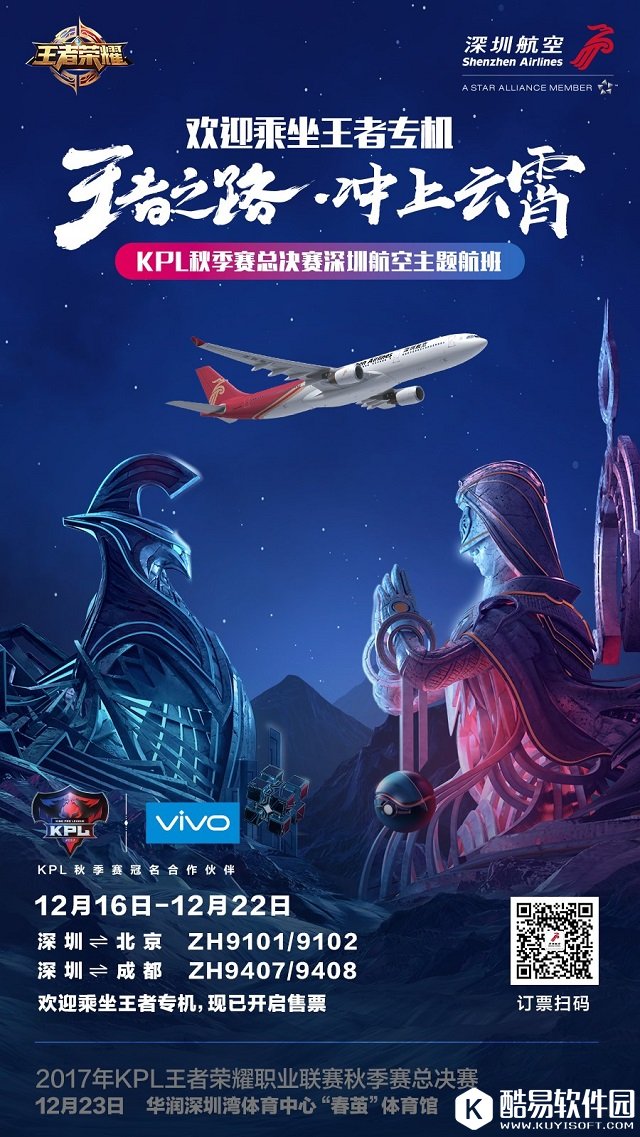 同时官方为了给买票的小伙伴们一个全新的体验,特地携手深圳航空,准备给大家一个关于KPL主题的专线,希望大家可以感受到官方的贴心。