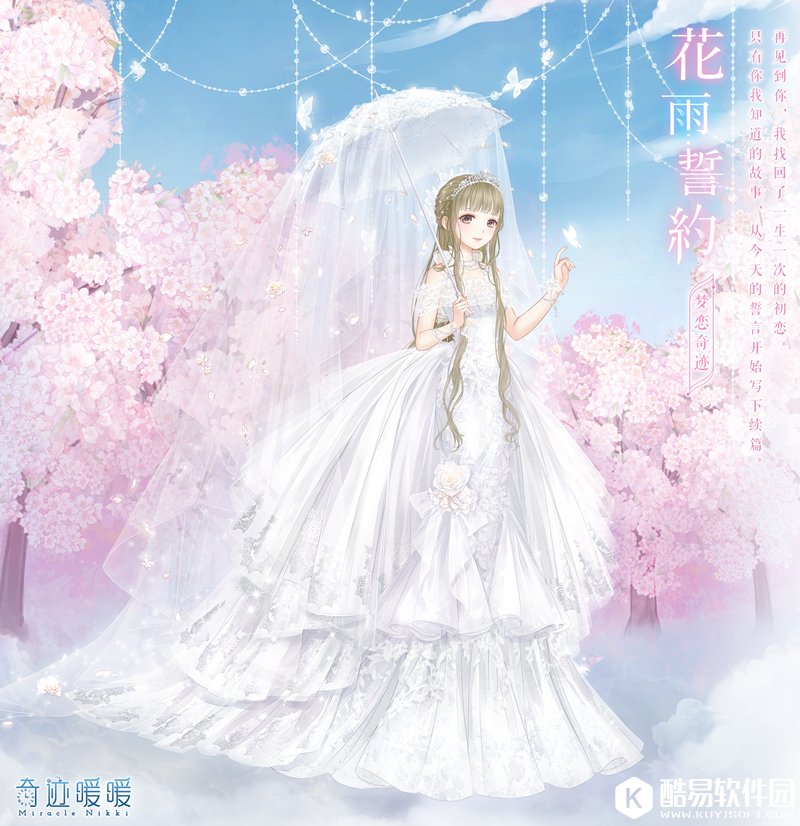 这个誓言戒指可以用它来兑换这次活动的两套婚纱,一件是梦中的婚礼,另一件是花雨誓约,这两件婚纱都非常的美。下面让小编给大家详细的介绍一下这两款婚纱的细节,首先是梦中的婚礼,听名字就非常的梦幻,这是一件露背的婚纱,裙摆拖得很长,裙边的剪裁似波浪,整体的基调是冷色调,给人很高冷的感觉,但还是很美。