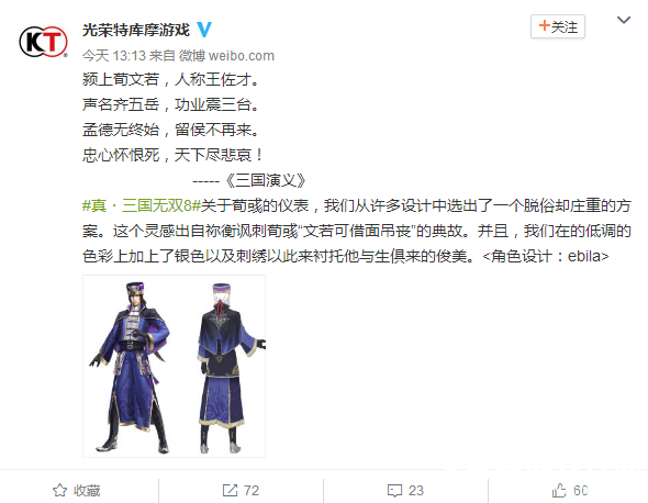 今天小编在在光荣特库摩官微中看到了一则消息,他们公布了《真三国无双8》荀彧的人设图,下面让小编给大家介绍一下荀彧这个英雄的外观以及历史上人物的性格。这个英雄人物角色的人设图非常的帅气,相信你们在看过之后应该都和小编有一样的看法。
