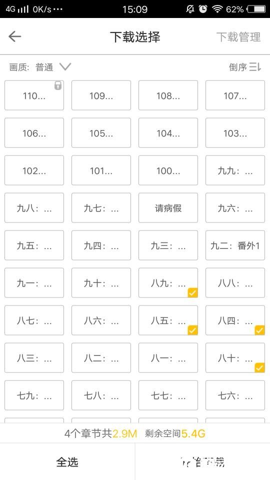 下载章节的页面可以自己选择下载哪一个章节,也可以看到需要下载章节的占手机内存空间的大小,根据容量适当下载,以上就是如何下载漫画的一个简要描述,相信你们可以通过小编的解释对这款软件有一定的了解,并且能熟练的掌握一些基本的操作。