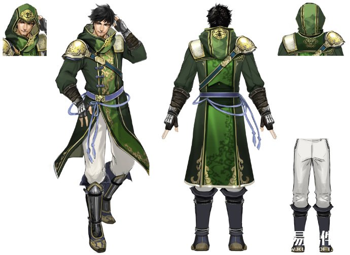 下面小编给大家介绍一下徐庶的衣服样式,首先他穿着绿色的连帽衣服,长度及膝,如果仔细的小伙伴们一定可以发现他的上衣扣子并不是对称的,有点创新的意思,下衣是纯白的裤子加上黑色的高筒靴,可能有很多小伙伴觉得这白色裤子显得有些突兀,但其实是官方暗藏心机的一点,因为深色和浅色相碰撞从侧面反映出这个人物的性格特点是比较两级分化的。