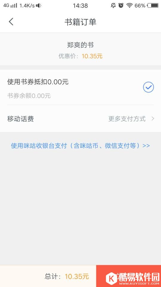 之后会跳转到另一个支付的页面,其实小编在这里也给你们解答了另一个问题,这款软件下载书籍是要钱的,就相当于你买了这本书,当然在价钱方面是比平时在实体书店要便宜许多,还是比较划算的。而且每本书的价钱都不一样,按照自己个人的喜好购买,最后小编提醒大家“点击支付”这个按钮不能随便点击,这个按钮直接会自动支付价钱,所以不明白的小伙伴一定要仔细看清楚要求之后在点击。