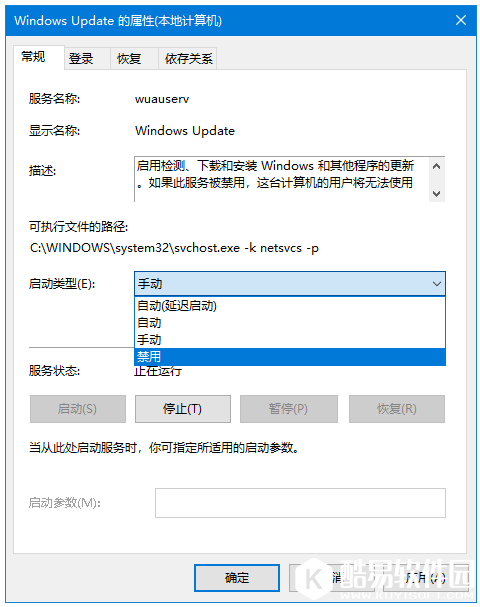 进入属性窗口,点击并停止服务,然后将其启动类型由「自动」改为「手动」。重启后,Win10系统应该不会跳出更新提示了。