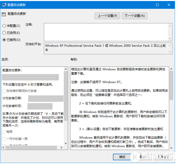 双击进入,将其数值改为「已禁用」,点击确定,Windows就再也不会自动更新了。