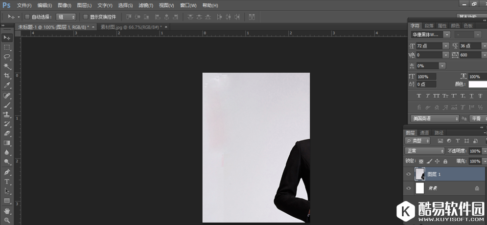 导入一张照片,按CTRL+A全选、CTRL+C复制,切换到另一张图,按CTRL+V粘贴到“未标题-1”文档,形成如下两个图层,