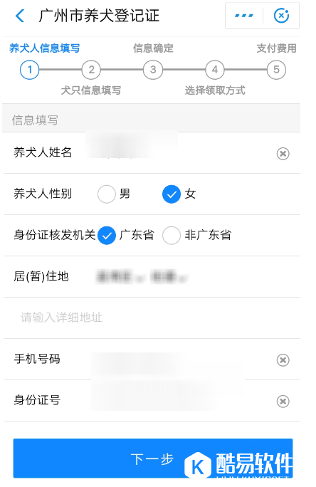 进行相关授权,点击同意,然后按照要求填写养犬人的信息,点击下一步,