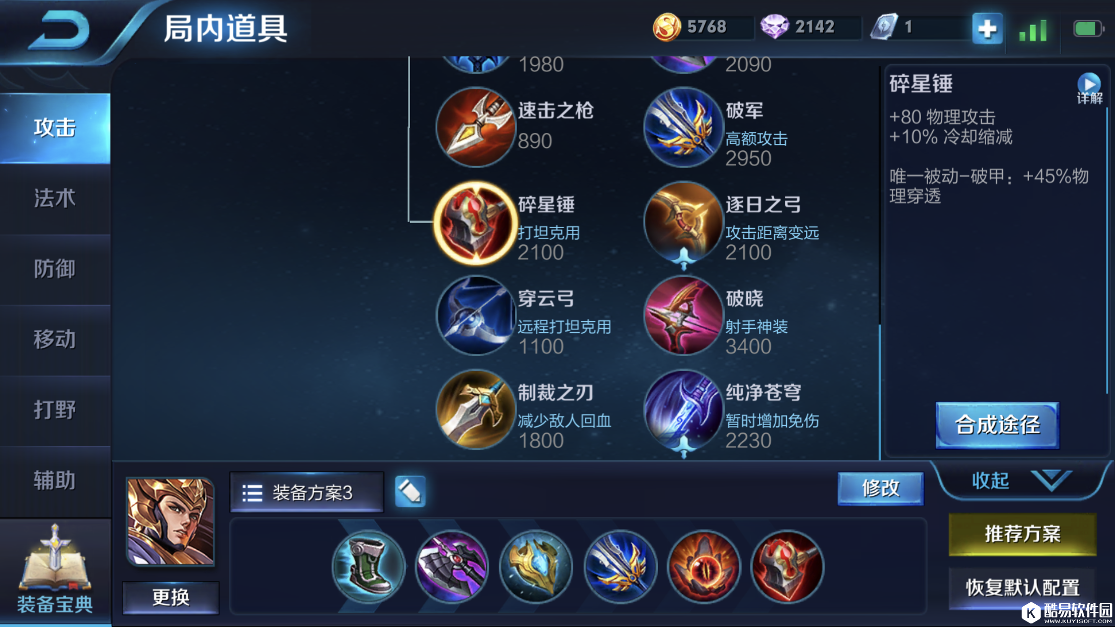 出装方面,因为杨戬拥有的被动,所以杨戬要出抵抗之靴,所以可以将抗性达到50%以上。暗影战斧、破军是为了增添伤害和加强一技能的斩杀效果。极寒风暴是为了减少杨戬的大招cd,毕竟杨戬还是靠大招吃饭的一个游戏,不死鸟就是为了大招的回血机制而出的一件装备。
