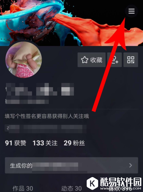 打开抖音APP,进入个人页面,点击菜单图标,
