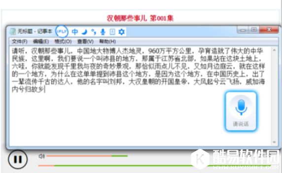 打开记事本,开始播放音频文件,语音输入功能就会自动识别声音、并在记事本中记录文字,