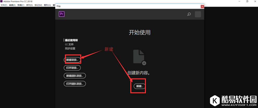 打开premiere软件,进入界面,点击新建项目,建立一个项目,