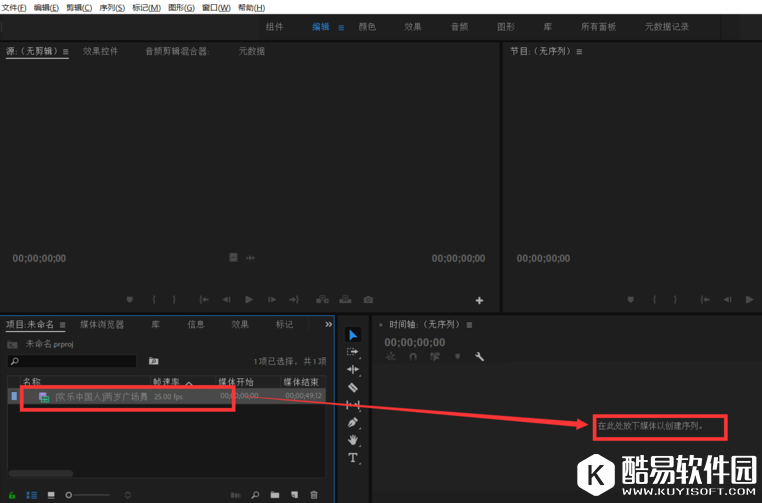 双击打开视频源素材,将素材拖动到时间轨道上,新建序列,