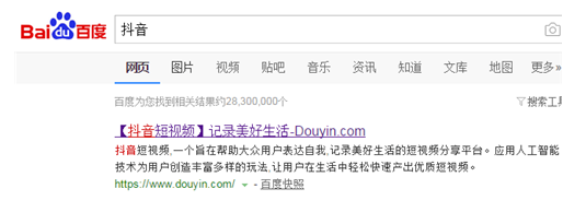 打开电脑,百度搜索“抖音”,点击进入抖音短视频的官网,
