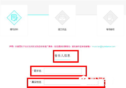 登录成后,按照要求填写音乐人信息,不能弄虚作假,否则无法通过,