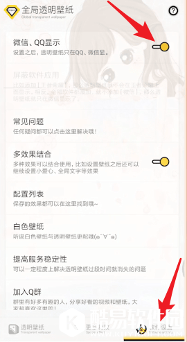 点击右下角的【软件设置】,将【微信、QQ显示】开启,