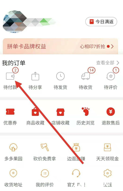 打开拼多多APP,进入首页,点击“个人中心”,进入界面,点击“待付款”的订单,