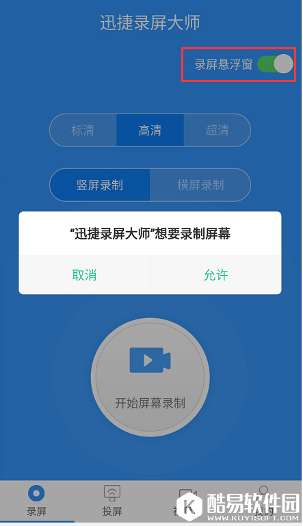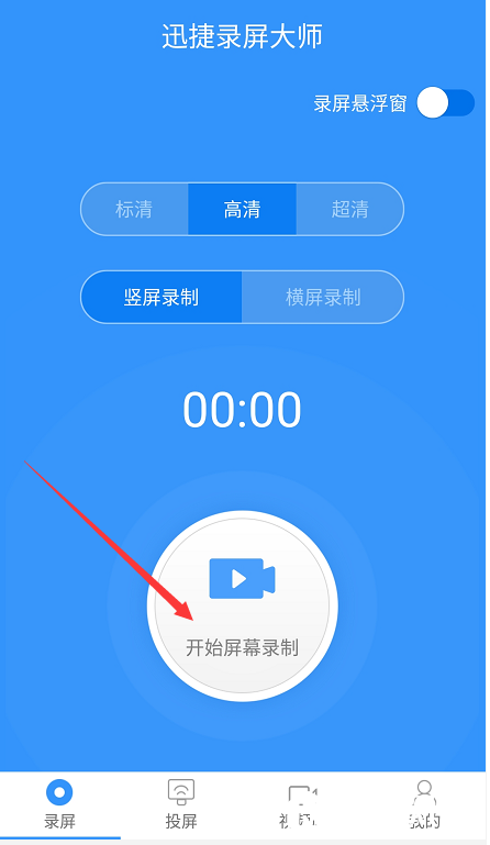 在手机上打开迅捷录屏大师,进入界面,先来设置录制视频画面的清晰度,选择录屏方向、是否横屏竖屏。