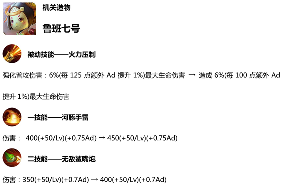 鲁班七号被动伤害降低一二技能伤害提升这是要这是要将其强势期提前的节奏,不过鲁班的生存能力较差前期伤害高一点还是很脆弱呀。
