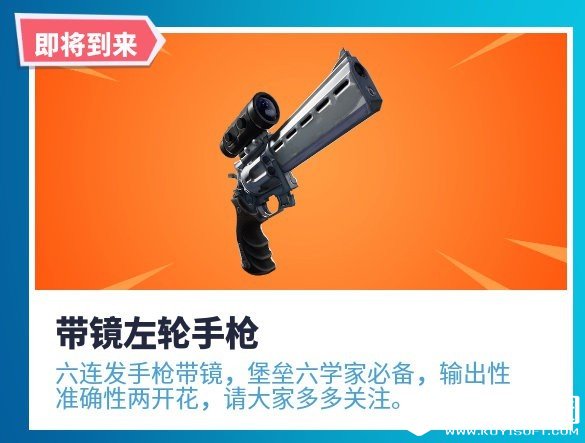 《堡垒之夜》将推出新武器,但是在这些新武器中,带镜左轮手枪的文案描述却引起了广大玩家的讨论:“六连发手枪带镜,堡垒六学家必备,输出性准确性两开花,请大家多多关注。”