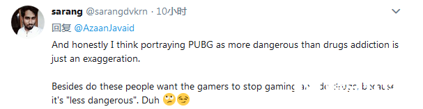 大意:老实说,我认为把PUBG和吸毒成瘾作对比有点夸张了,这些人不仅希望玩家们停止吸毒外,还希望他们也不要玩游戏了。因为这“不是多么危险呀”