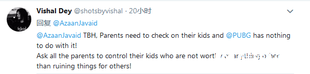 大意:父母应该去好好管教他们的孩子,这和PUBG没有任何关系。要求所有的父母控制住自己那个除了毁别人东西还一无是处的熊孩子。