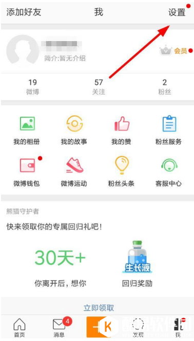 打开手机微博,进入界面,点击【我】——【设置】,