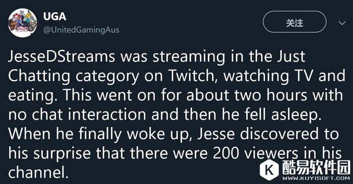 这名主播叫杰西(Jesse),今年36岁。最近一次直播时,他忘记关摄像头就睡着了。之后,在200多人的注视下,他慢慢醒了过来,这才知道发生了什么。