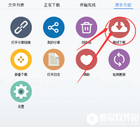 此时弹出多种选项,点击【离线下载】,我们就可以看到下载BT文件与磁力链的功能,