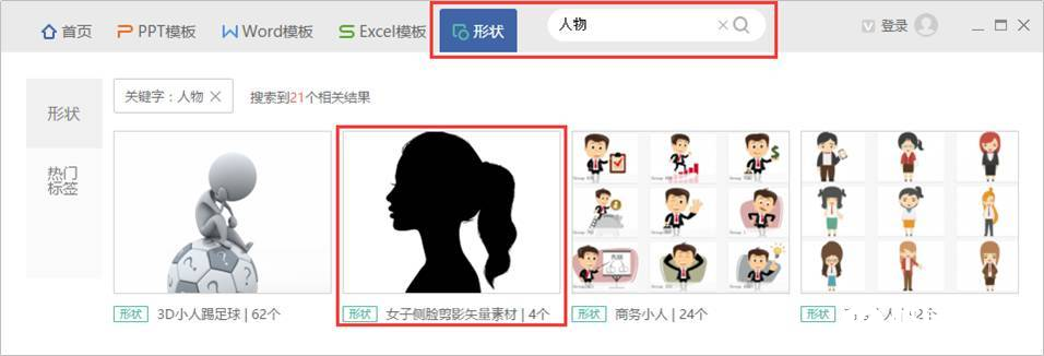进入资源广场网页,点击【形状】,搜索关键词“人物”,找到你需要的人物侧脸图片,