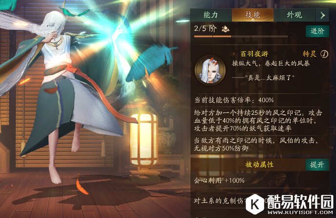 对木系的克制方面,即使加强了,还是不如木系一哥司羿了,超多段攻击搭配阿织实是强!不过有一个就业地点是其他任何妖灵都无法替代的,就是限时的妖魄本。土系小怪+boss,低血量回气的风伯绝对是最佳输出。