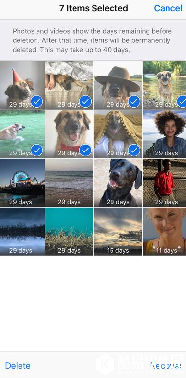 点击删除相册中的照片,此时照片并没有“消失”,而是自动移入到“最近删除”相簿,它们会在那里保留30天,然后才被永久删除。如果你最近误删了照片,可以先查看此相簿,选择恢复照片。