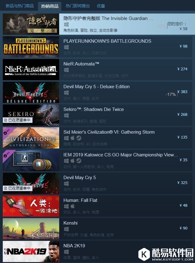 国产谍战游戏《隐形守护者》在上个月登陆Steam发售后,在玩家的评论中好评也是居多,达到了90%的好评率。根据今日Steam商店页面的显示《隐形守护者》已经登顶近日的Steam游戏热销榜。