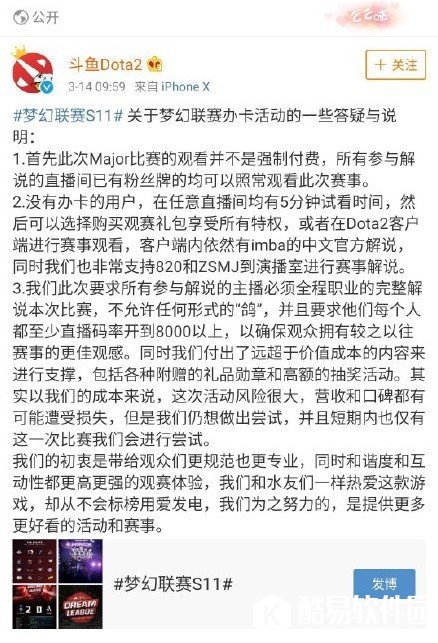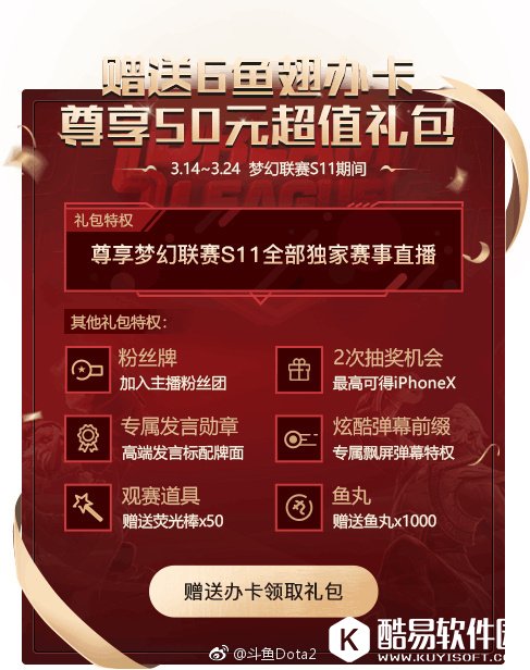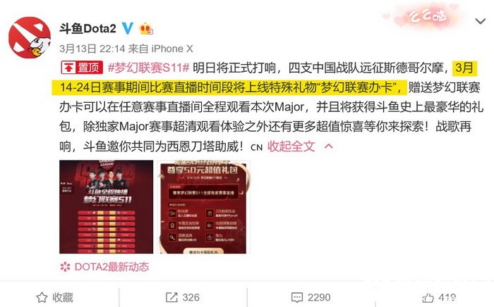 13日,斗鱼公布了《DOTA2》Major观战方式:将于3月14-24日赛事期间上线特殊“梦幻联赛办卡”,购买该卡可在任意赛事直播间全程观看本次Major,或者之前有主播粉丝牌的网友依旧可以照常观看比赛。
