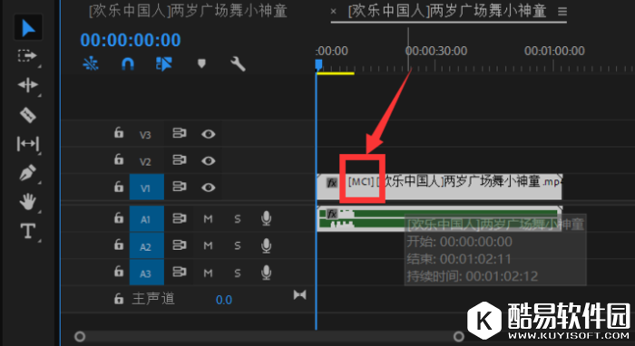 将生成的序列拖动到时间轨道上,看到序列上带有mc字样,就表示多机序列新建成功了。